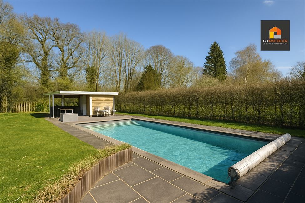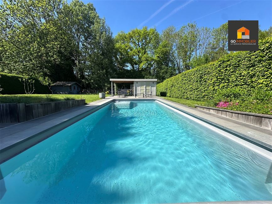 Cette magnifique propriété 4 façades séduit dès le premier regard par son style élégant et ses finitions soignées. Elle offre trois chambres généreuses à l’étage ainsi qu'une quatrième plus petite, parfaite comme dressing pour la suite parentale. Retrouvez un espace bureau au rez-de-chaussée. À l’arrière, le jardin se transforme en véritable lieu de vie : une grande piscine chauffée (9x4), un chalet avec vestiaire, un étang naturel et une végétation luxuriante créent une atmosphère paisible et intime.