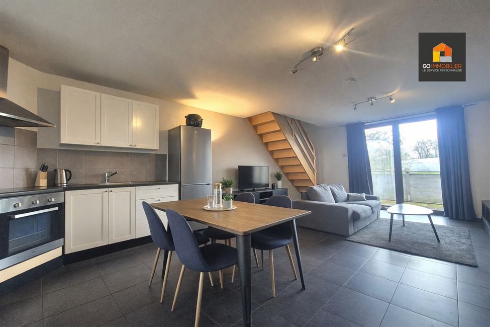 Situé à Glimes, entre Jodoigne et Perwez, proches des grands axes routiers, nous vous proposons un magnifique duplex une chambre en pleine campagne ! Au 1er étage d'un corps de logis comprenant 2 unités, il se compose d'un spacieux séjour avec cuisine ouverte équipée de 32m² (four, taque vitrocéramique, hotte, double évier, emplacement machines et armoires de rangement), et, au 2ème étage, d'une salle de bain et d'une chambre (13m²) avec placards. Vous profiterez également d'une grande terrasse (16m²) avec vue sur les champs ! C'est le bien idéal pour qui recherche le calme et la sérénité ! Forfait de charges : 20euros pour l'électricité des communs et l'entretien des abords ! Place de parking devant l'immeuble. Libre le 01/05/26 !
